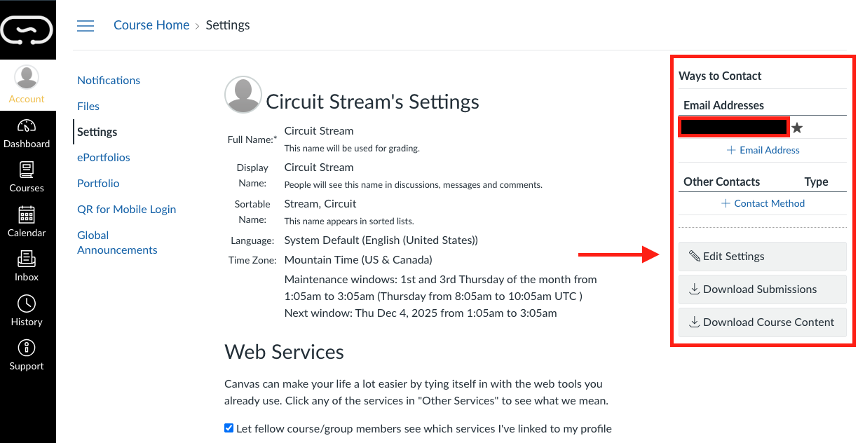 - You can add additional emails or points of contact in the following page. You may also download a offline digital course content of the courses you are taking. Click Edit Settings, found near the top/right of your screen.