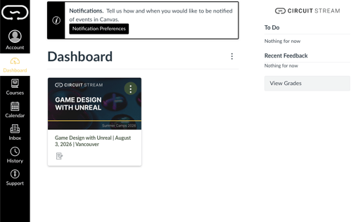 The Circuit Stream Learning Management System (LMS) dashboard is your central hub for accessing all course-related materials, announcements, and resources.